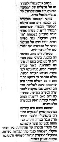 הנה מה שנכתב בעיתון "תל-אביב" בנושא: