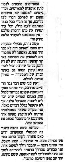כתבו עלינו (ועל מסעדת דים-סאם) בעיתון
