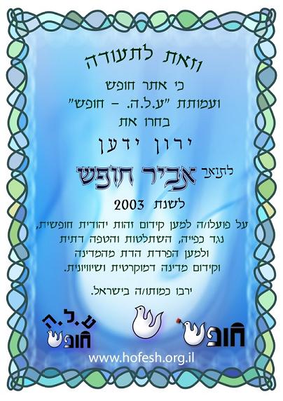 חופש 2003". אספנו הצעות למועמדים, ואז פנינו גם אליכם - הגולשים - וגם