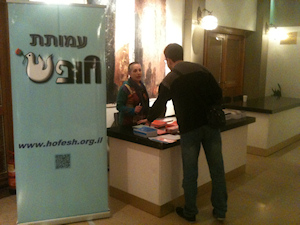 עמותת 'חופש' הקימה דוכן בקומת הכניסה של הכנס, שניתן היה להשיג בו חומרים מודפסים שונים,