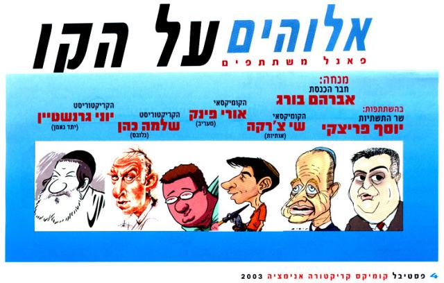 הרישום, הציור והביקורת של הקריקטוריסט. השתתפו בפאנל ח"כ אברהם (אברום) בורג