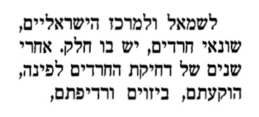 "השמאל והמרכז הישראלים שונאי חרדים", שכביכול במשך שנים