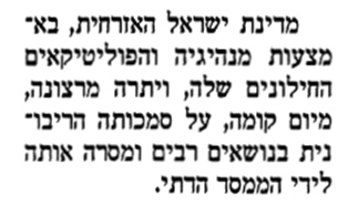 בזכות דמוקרטית מלאה - בשכונה חילונית, כשהמטרה האמתית היא לשמש ראש-חץ בכיבוש