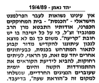 דעתו הברורה ב-19.4.1989: