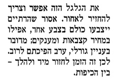 תמימה לכאורה של פעילים חרדים אל תוך החברה החילונית ולאזורי מגוריה. יממה לאחר