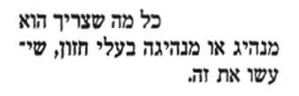 חייו במסגרת השקפת עולמו, ולמנוע מכל אדם דתי - פשוט-עם או רב גדול בתורה - לרמות