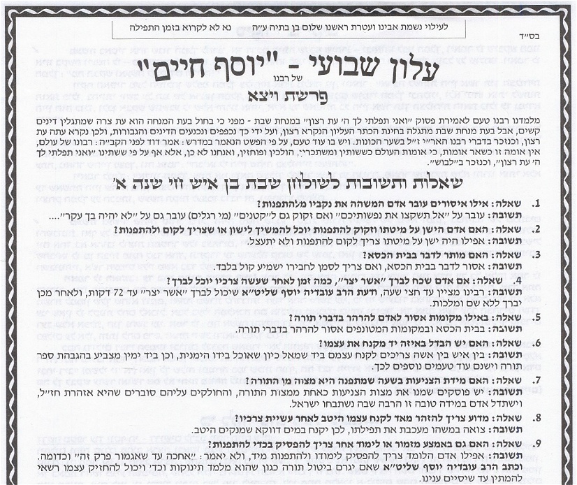 של הרב עובדיה יוסף האוסר לחטט באף בשבת. בתקופה האחרונה "הסתובב" באינטרנט אוסף נאה של