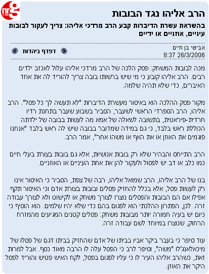 של הרב עובדיה יוסף האוסר לחטט באף בשבת. בתקופה האחרונה "הסתובב" באינטרנט אוסף נאה של