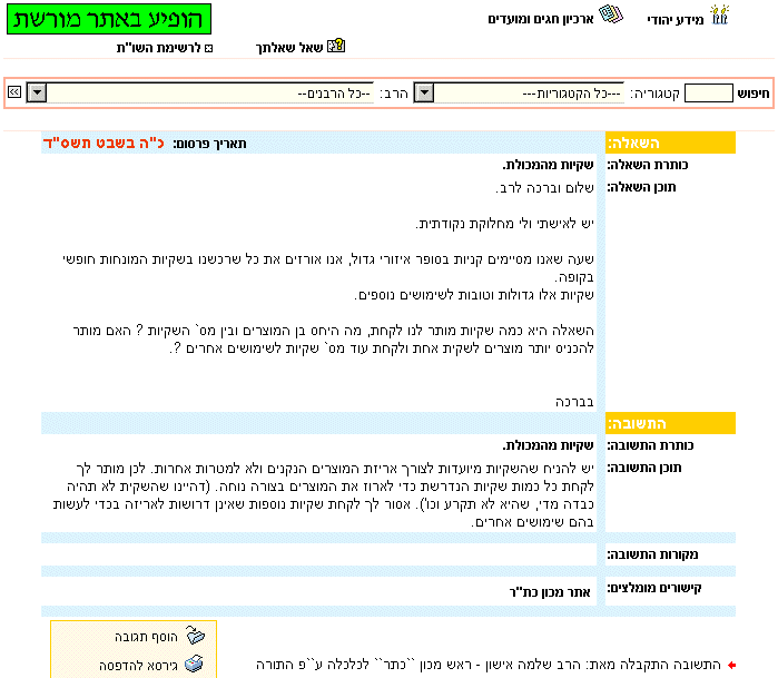 אליהם מספר רב של פסקי הלכה נוספים מהאוסף הפרטי שלנו.