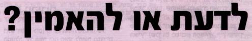 בסוף השבוע שעבר נוכל למצוא כתבת שער תחת הכותרת 'לדעת או להאמין?'. לכתבה מופלאה
