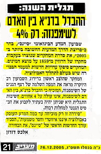 לשם כך נביא ידיעה (פורסמה במעריב ב-26.12.2005) כמות שהיא,