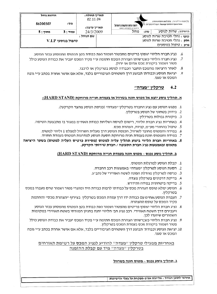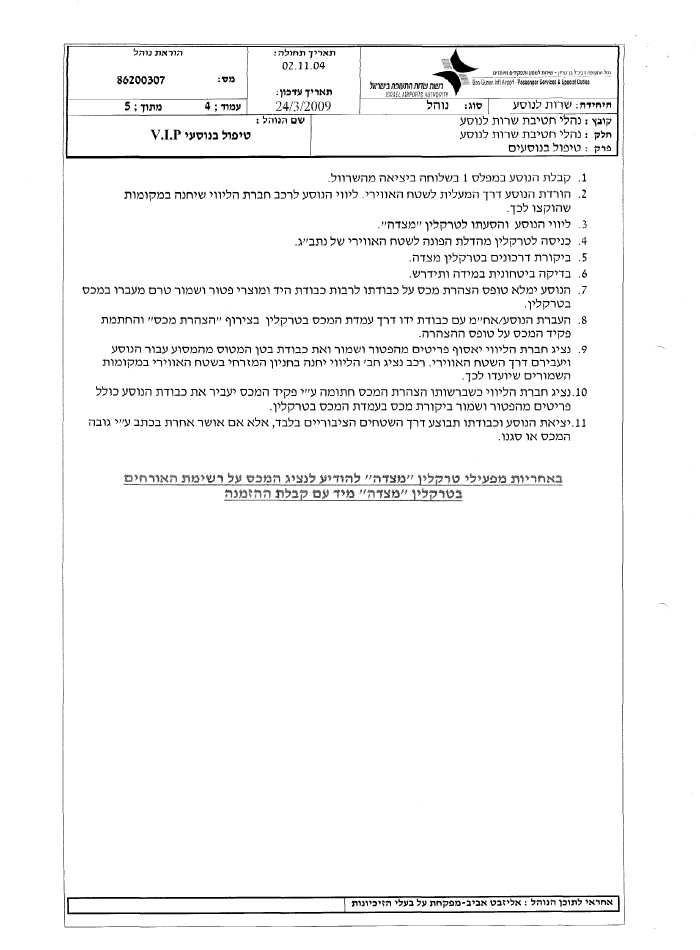על כולם חל נוהל מס' 86200309 של רשות שדות התעופה - נוהל המאפשר למכובדים המופיעים בו