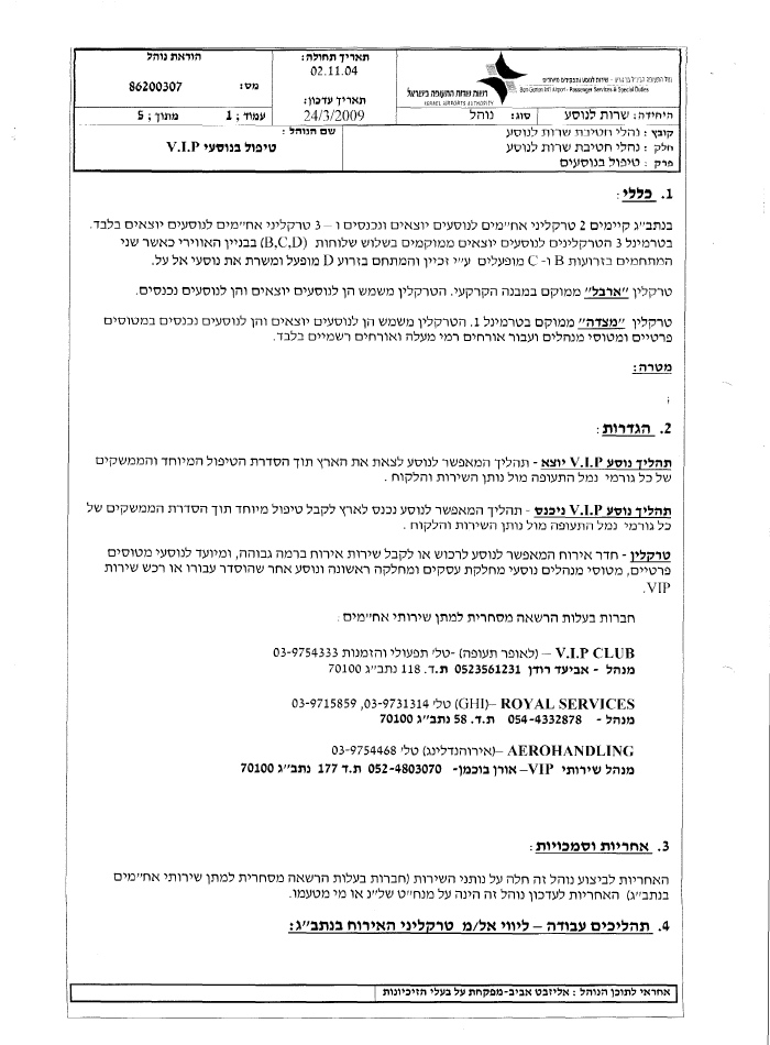 הודיעה כי ביקורת הדרכונים תיערך מעתה על ידי פקיד הרשות בטרקלין ה-VIP. לאחר השלמת בידוק הדרכונים