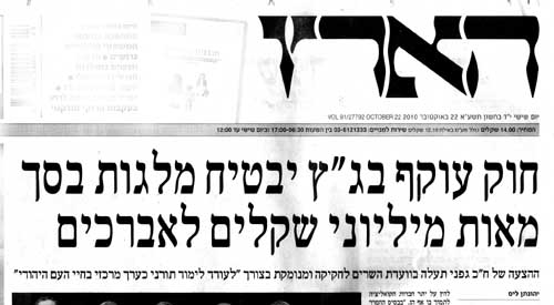 הכותרת הראשית ב"הארץ" 22.10.2010