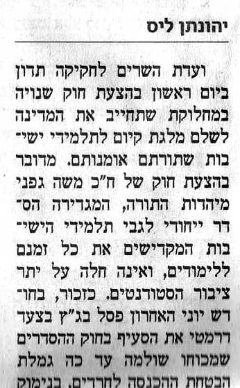 בשום מדינה מתוקנת הצעה כזו לא הייתה עולה לאחר שבג"ץ קבע את דברו! אבל אצל מלחכי-הפנכות של החרדים,