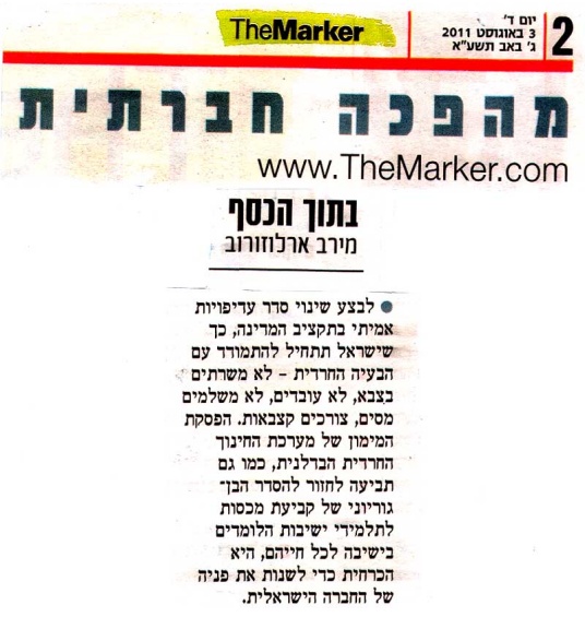 דרישותיה של מירב ארלוזורוב במוסף TheMarker של "הארץ" מ-3.8.2011