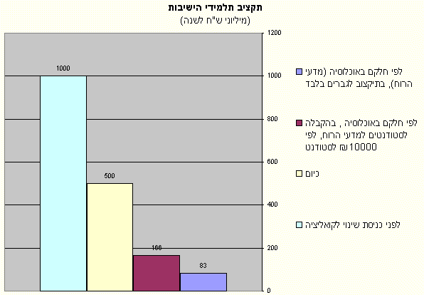 ההשכלה הגבוהה. גם תחת הנחה מופרכת זו ניתן לראות בבירור, כי הישיבות מקבלות הרבה