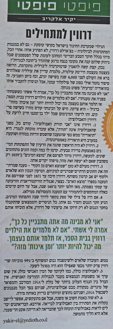 הגילוי שמערכת החינוך בישראל בקושי עוסקת - גם לא במגמות המתקדמות לביולוגיה - בצ'ארלס דרווין, לא הפתיע