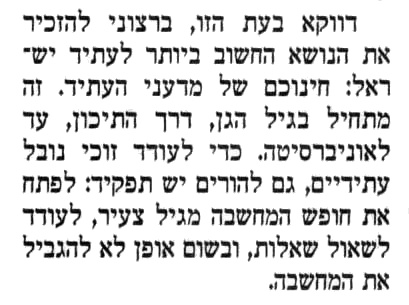 הוא חינוכם של מדעני העתיד. וכך אמר: