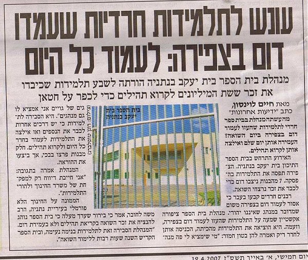 עונש לתלמידות חרדיות שעמדו דום בצפירה ביום השואה