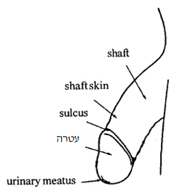 ללא עורלה והעטרה חשופה. כלומר, תוצאת המילה, היא חשיפת העטרה.
