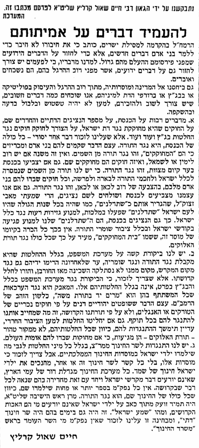 המאמר הופיע בעיתון "יתד נאמן" (עיתונו של הרב ש"ך) בתאריך 31.5.2000