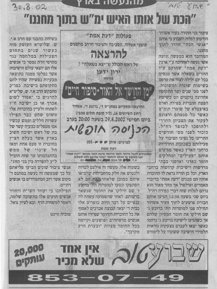 לא שמעת על דעת אמת ו/או לא יצרתם קשר עם דעת אמת כדי לסייע בידם? תתביישו לכם וקראו