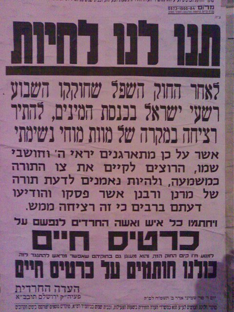 החרדי. הדיון בתיקשורת בחוק עימת רופאים שהתנגדו נמרצות לעירוב שיקולים דתיים בנושאים