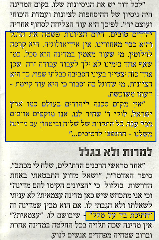 "הציונות פשטה את הרגל ... מי שדוגל בה ... דעתו משובשת"
