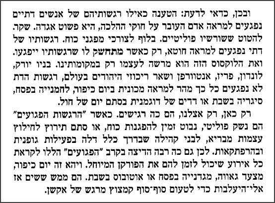 ברגשותיהם, וראוי לנסות ולהגיע לפשרה מסוימת בין רגשות החילונים שנפגעים כתוצאה