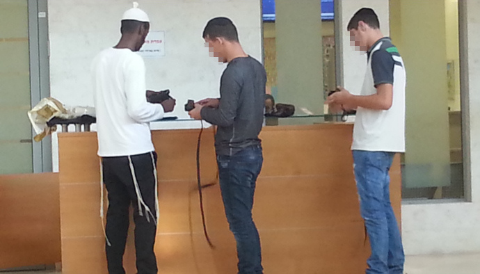 מיסיונר יהודי הפועל ללא כל הגבלה באולם הכניסה לבית משפט השלום בפתח תקוה.