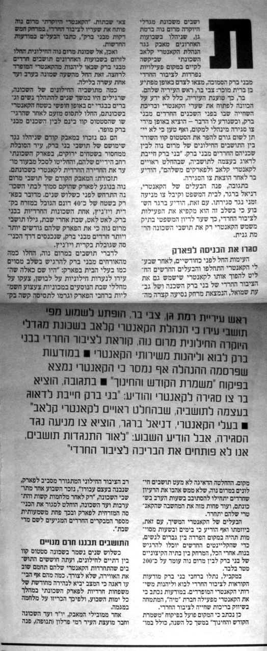 סגירה מינהלי למקום, והודיע שלא יתן לאף גורם להפר את הסטטוס קוו השורר בין התושבים החילוניים
