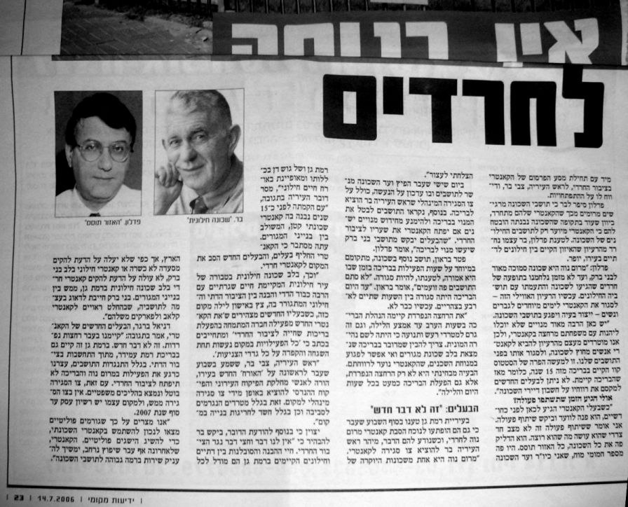 (על פי דיווח במקומון ידיעות תקשורת לאזור רמת גן בני ברק, 14.7.2006)