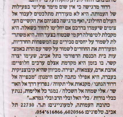 16.8.01 ,"ריעה" ןותיעב המסרופש יול יגח תאמ הבתכ ךותמ םיעטק