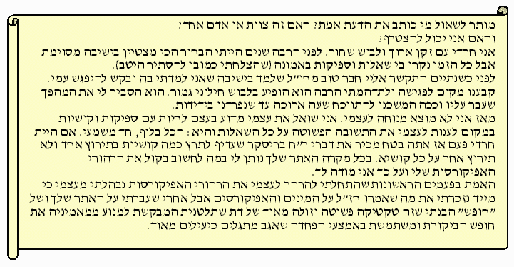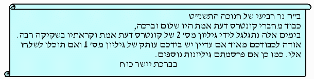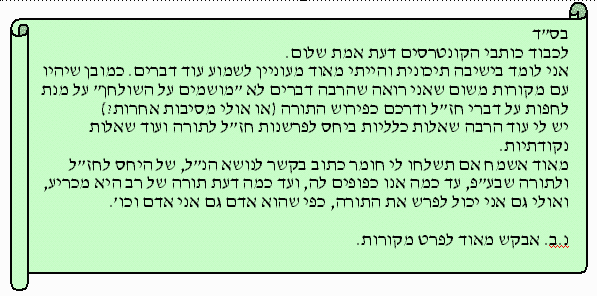 ףסונ ןיינע תחת'ת לאקזחיל קשנל אל וא ונתיא םתא :וטילחת ?"חישמ חישמ" םירשש הלאה ?ד"בח "םולשו המחלמ"ב םיגולידה לעו הרותב םיגולידה לע |