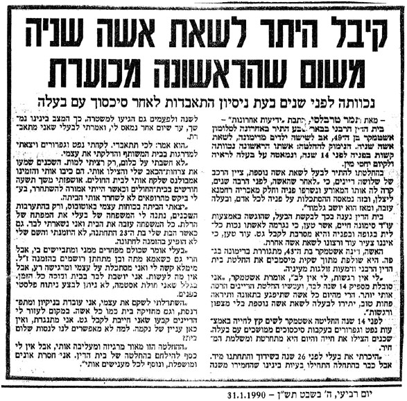 פסק הדין הרבני בבאר-שבע, בדבר היתר ביגמיה, חשף פעם