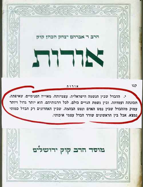 "ההבדל בין הנשמה הישראלית [היהודית], מאווייה הפנימיים, שאיפתה, תכונתה ועמדתה ובין