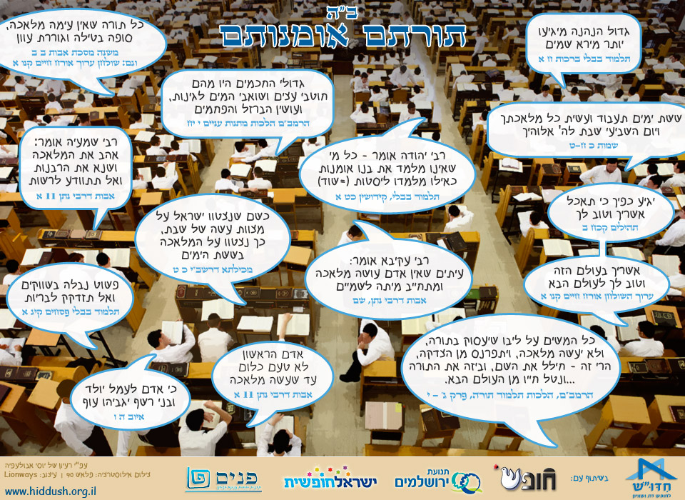 "תורתם אומנותם" שממחיש כי גם המקורות היהודיים הם נגד "חוק האברכים" וכי השתתפות פעילה בשוק העבודה