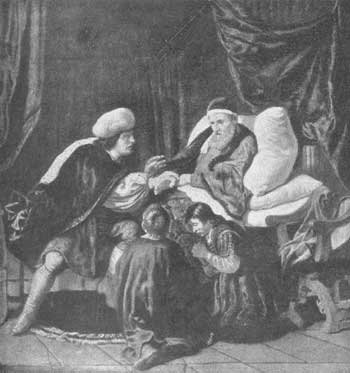 כדי להתיישב על המיטה (1-2). עיני יעקב כבדו מזוקן והוא איננו רואה את ניניו