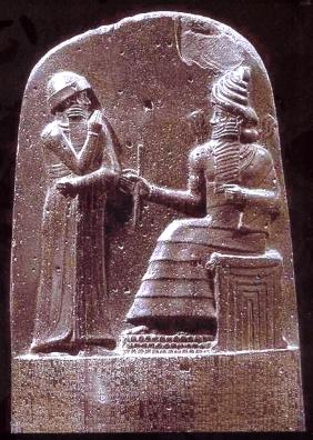 בה נראה המלך חמורבי מגיש מנחה לאל הבבלי