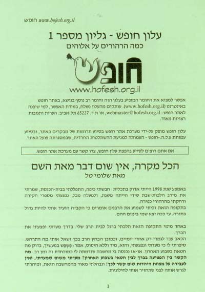ככה נראה הדף הראשון של עלון חופש מספר 1:
