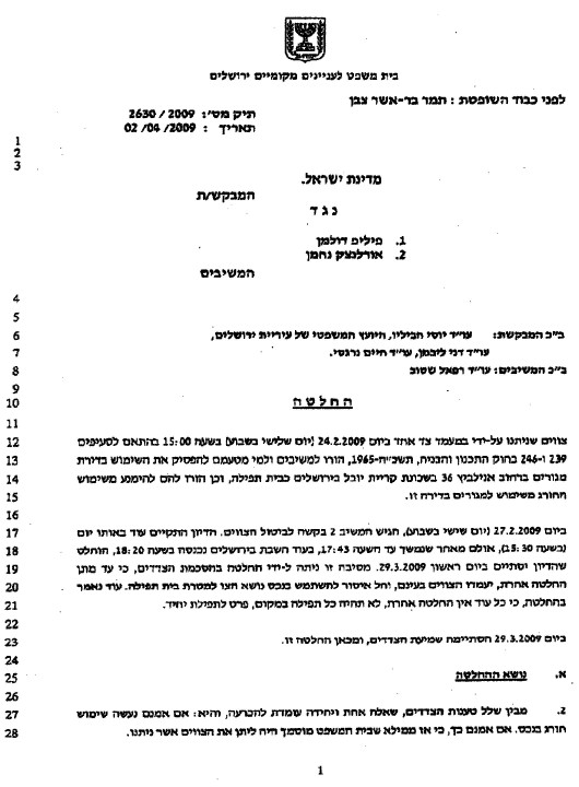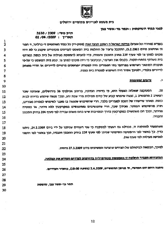 מדובר על החלטה מורכבת של 12 עמודים. מצורף להלן העמוד הראשון והאחרון.