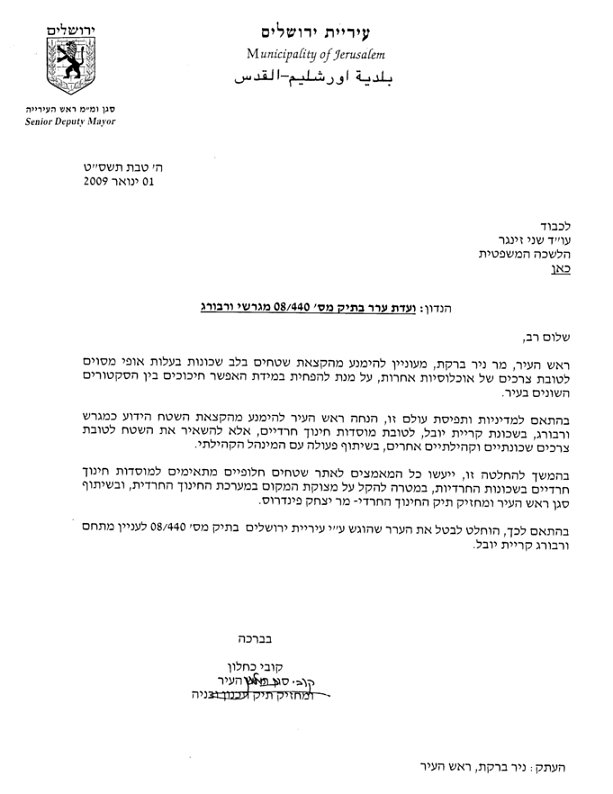 מסוים חשוב נוצח כבר המאבק. שגיונותיה של עיריית ירושלים בהרכבה הקודם הצליחו ליצור ולגבש