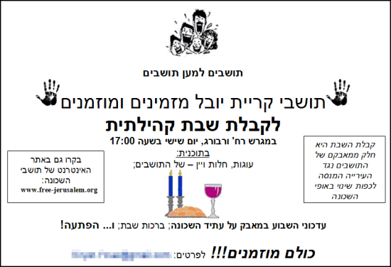 גנים וכד'.לצורך כך זקוקים למתנדבים אשר יסכימו להפיץ פליירים במשך שעתיים-שלוש בימי שישי. אנא, התנדבו כך שתוכלו