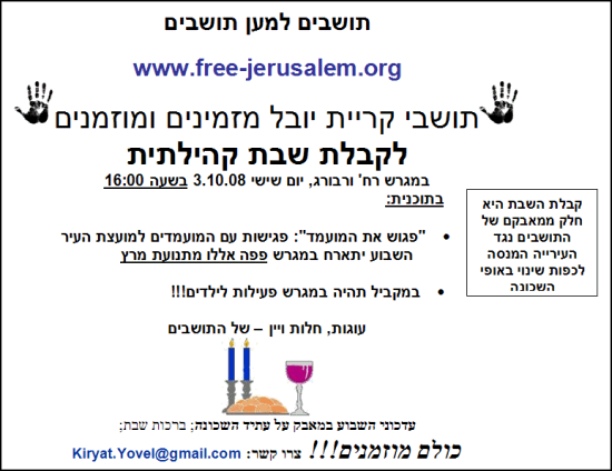 אתר "חופש" מברך את תושבי ירושלים על הצלחתם בבחירות, ומאחל לתושבי קרית יובל הצלחה במאבק, למען