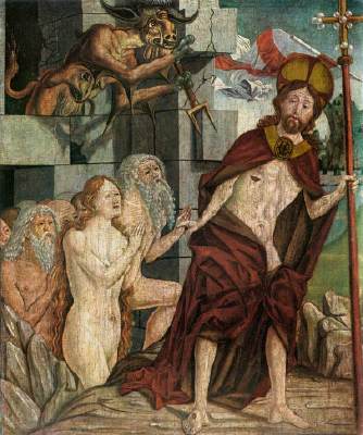 בציור נראה ישו אוחז בידו את אדם -